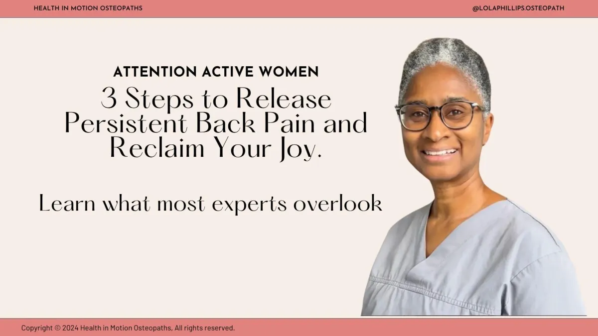 The program got me to see sporadic back pain as symptomatic of other issues I wasn't really aware I had...... Lola has a very welcoming style and has got me to a better place - both physically and mentally. I have been truly surprised how effective talking can be; sharing experiences with the other course members was really helpful, and one to ones with Lola helped pick up specific queries I had. Thus far, the investment I made in myself seems very worthwhile, and I recommend the program to others. Plus I'm unexpectedly equipped to simplify future actions and plan with clarity. Win win!"